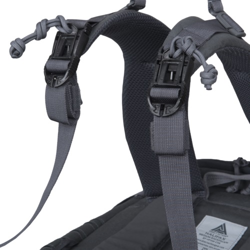 Robustní ramenní popruhy přerozdělí váhu přenášeného vybavení. Další kotvící body na dně a bocích spolu se zesílenou konstrukcí celého batohu jej předurčují pro výsadkové operace. Zipy na přední straně, stejně jako na zadním panelu SPITFIRE®, umožňují montáž jakéhokoli z zadních panelů Direct Action, díky čemuž je HALIFAX® ještě škálovatelnější.