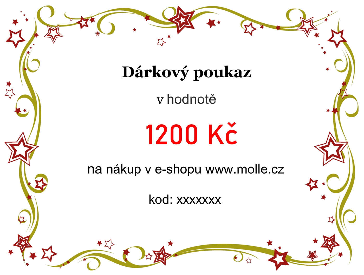 Nabízíme Vám dárkový poukaz v hodnotě 1200 Kč na nákup v e-shopu www.molle.cz.