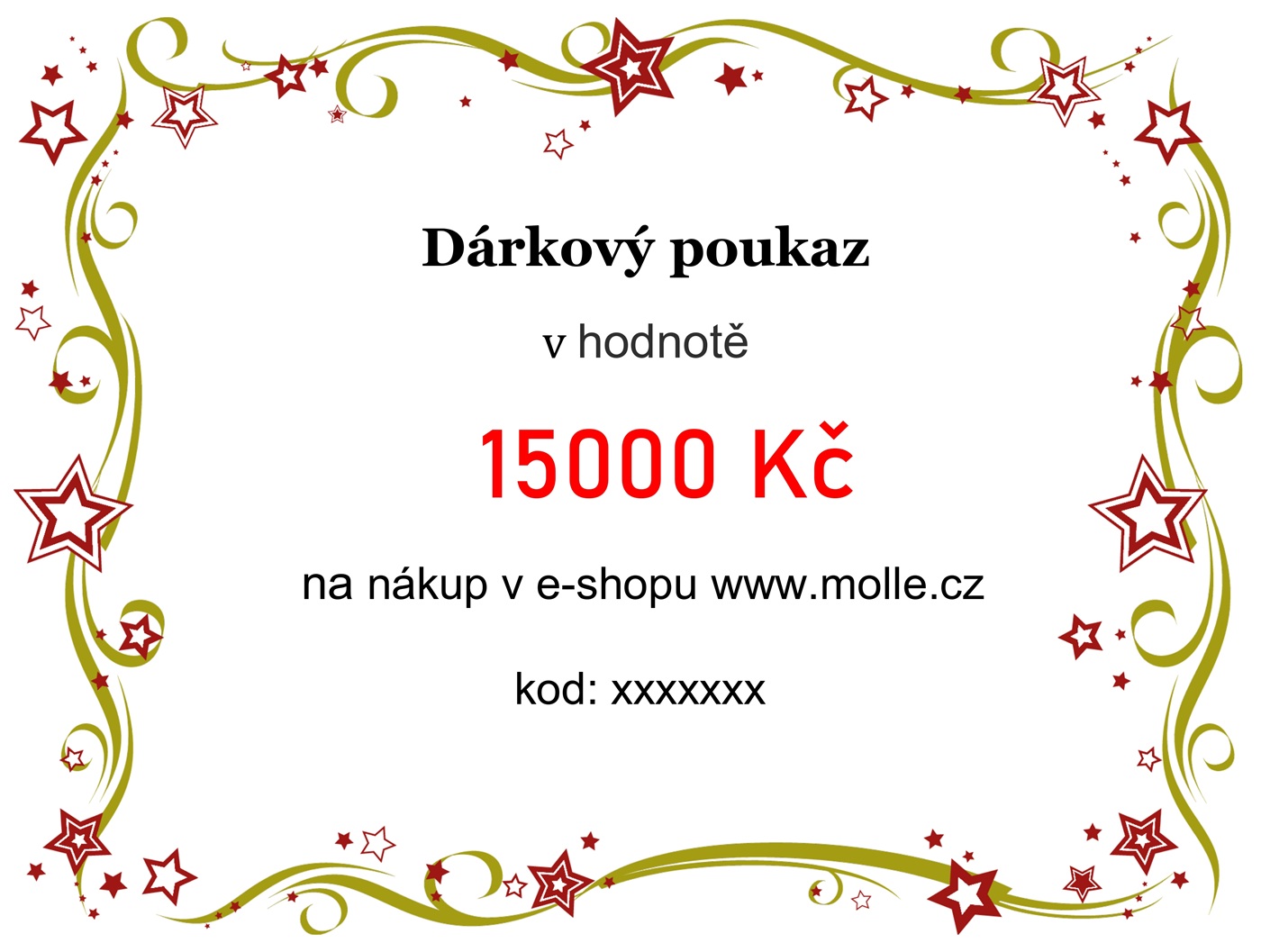 Nabízíme Vám dárkový poukaz v hodnotě 15000 Kč na nákup v e-shopu www.molle.cz.