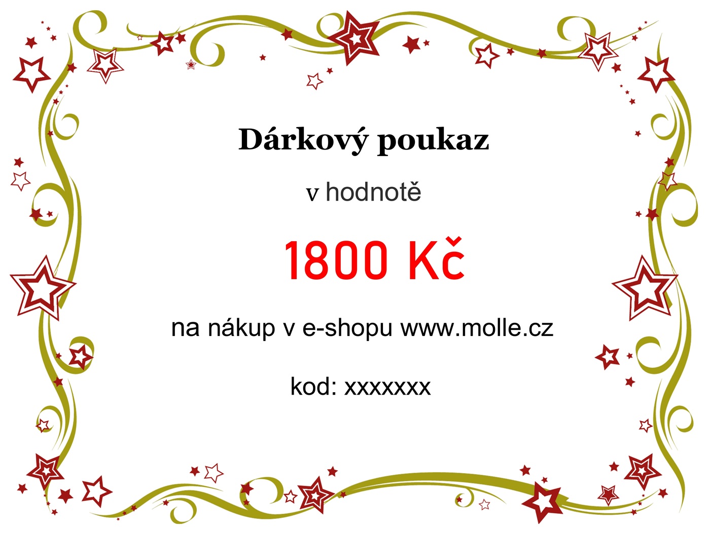 Nabízíme Vám dárkový poukaz v hodnotě 1800 Kč na nákup v e-shopu www.molle.cz.