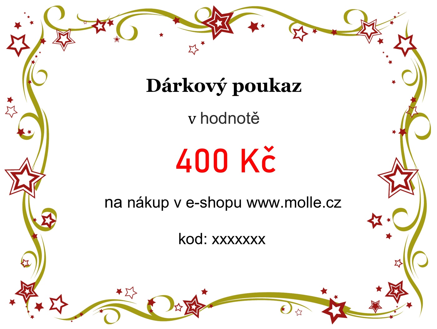 Nabízíme Vám dárkový poukaz v hodnotě 400 Kč na nákup v e-shopu www.molle.cz.