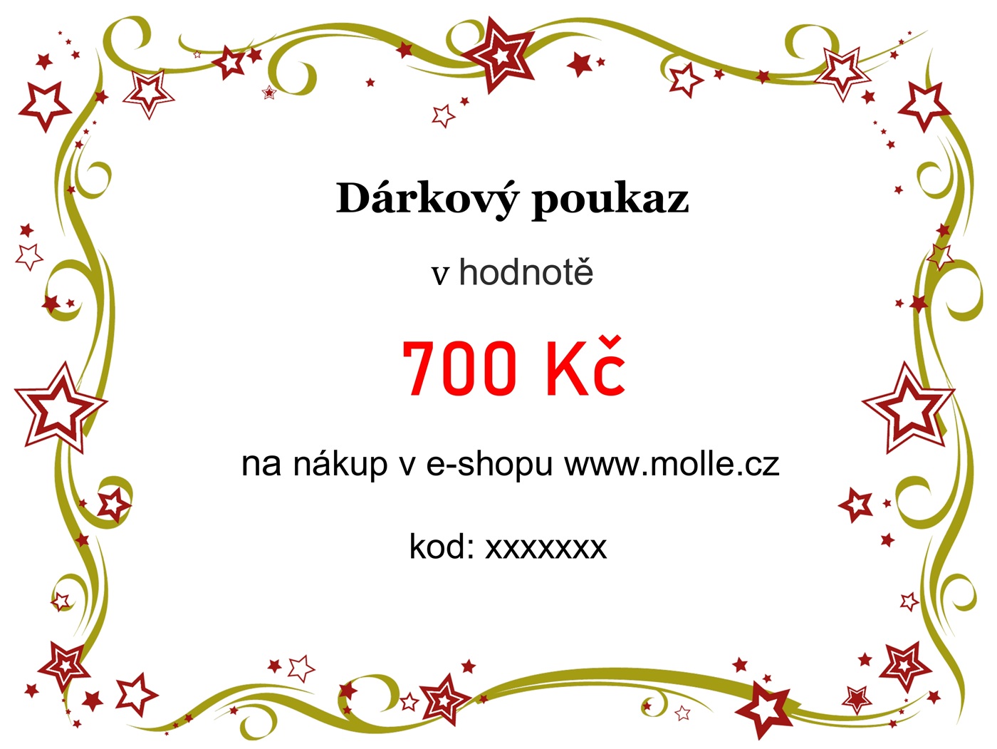 Nabízíme Vám dárkový poukaz v hodnotě 700 Kč na nákup v e-shopu www.molle.cz.