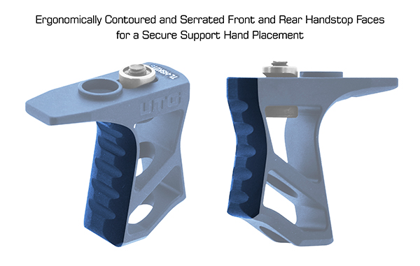 Kompaktní a štíhlá, minimalistická přední taktická rukojeť UTG hand stop. Je ergonomicky tvarovaná a díky perforovanému tělu velmi lehká, přitom si zachovala svou pevnost. Montáž je oboustranná a její montáž na zbraň velmi snadná.