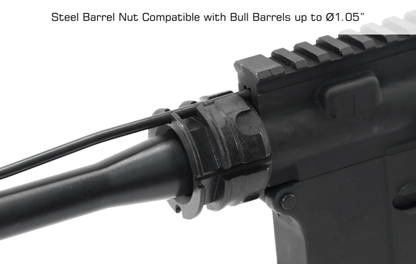 Vlastnosti: Integrované protiskluzové tabulky pro přesné zarovnání s horním přijímačem a k prevenci neúmyslné rotace a ohybu pažby.