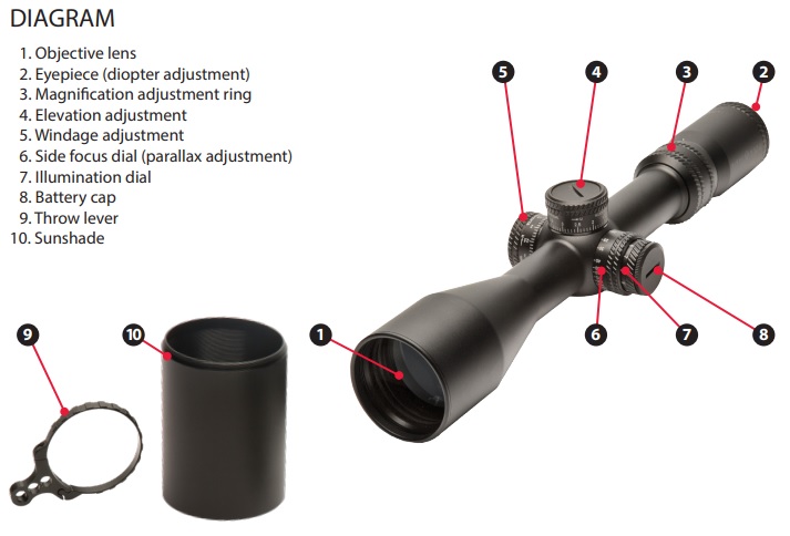 Záměrný kříž je v první fokální rovině, kříž se tedy se zoomem mění a infomace jsou přesné při jakémkoliv zvětšení. Díky gumovým o-kroužkůmje puškohled vodotěsný. Puškohled odolává zamlžnění, je uvnitř plněn dusíkem. Všechny vnější povrchy čoček jsou potaženy antireflexními vrstavmi pro perfektní přenos světla bez ztrát světelnosti.