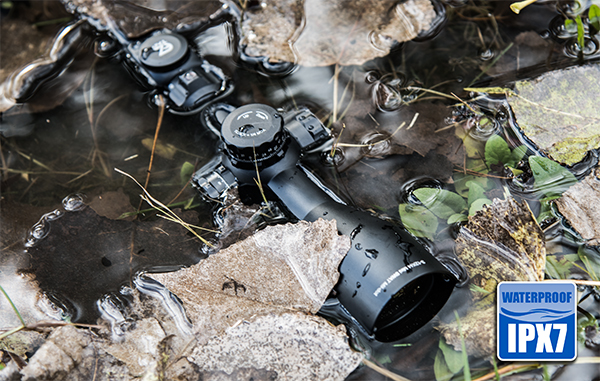 Etched Glass reticle : do skla leptaná osnova typu UMOA. Zaměřovací kříž MOA (UMOA) obsahuje hašovací značky v přírůstcích MOA pro přesnou kompenzaci pádu střely a snosu větru, stejně jako odhad dosahu.