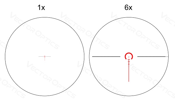 Skutečný 1x Power Scope Two Eyes Open, Skutečný 6x Zoom Factor