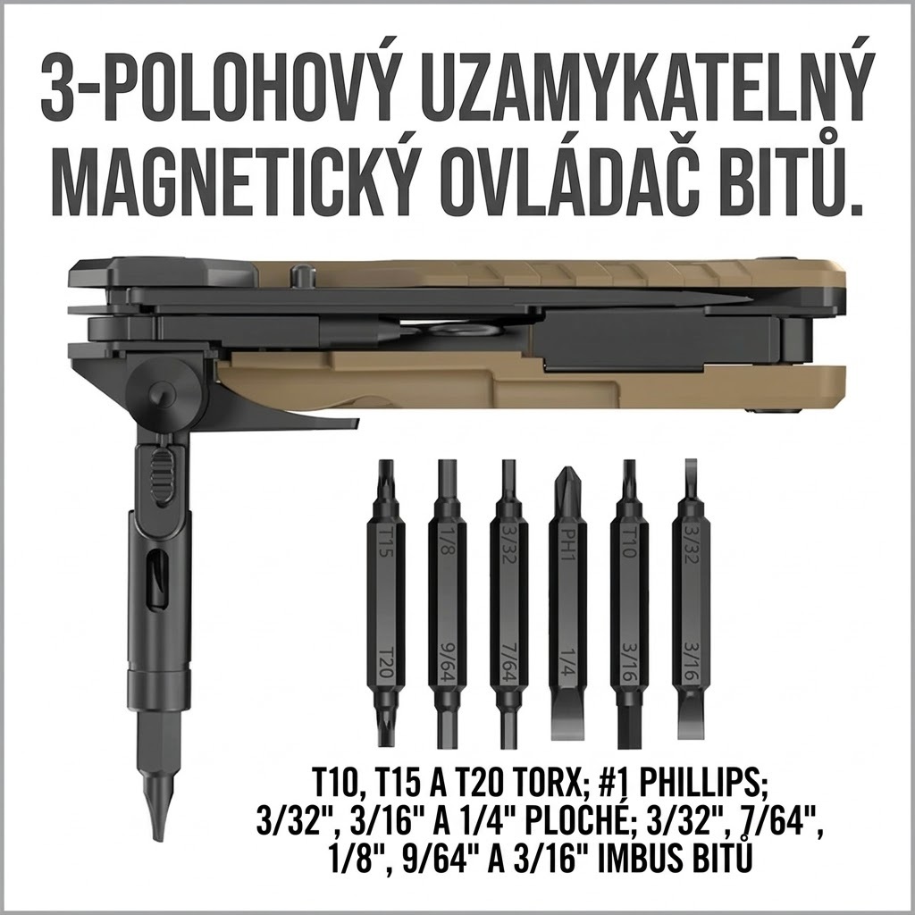 Vybaveno uzamykatelným šroubovákem s 12 základními bity