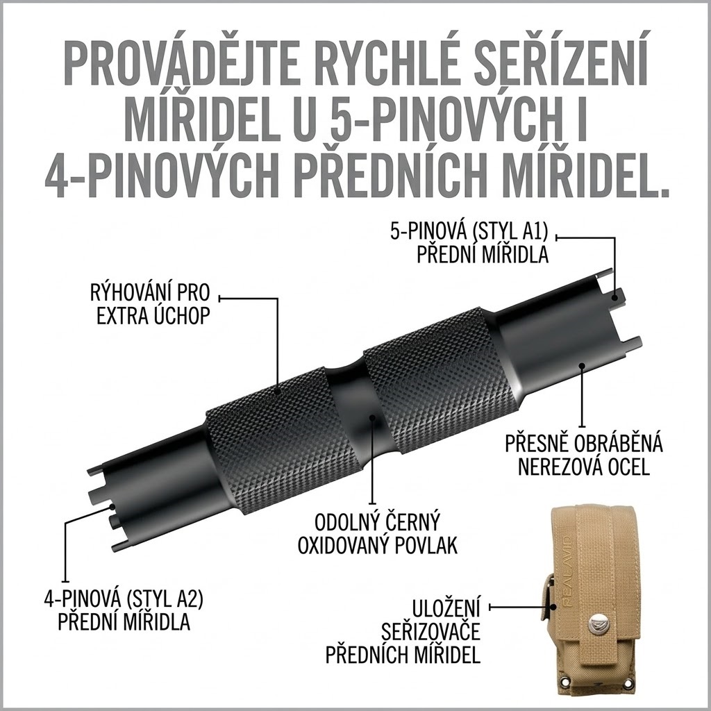 Chytrá puškařská podložka pro AR15 Real Avid AR15 MASTER Nejkomplexnější Bench Blok pro AR15, který vám pomůže při vyklepávání 13 kritických pinů a 5 různých komponentů. Protiskluzová zadní strana, která drží na stole. Magnet udrží piny v bloku a nikdy je neztratíte. Popisy na bloku pro jasné použití. Přihrádka pro uchování pinů. Velikost : 5 1/4 x 7 1/2 inches Vyrobeno z velmi odolné technické pryskyřice Proti skluzová zadní strana 4 magnety na zadní straně bloku  Bolt (Horizontal) 1/16" and 3/32" Pins Bolt (Vertical) Gas Block (2) 1/8"