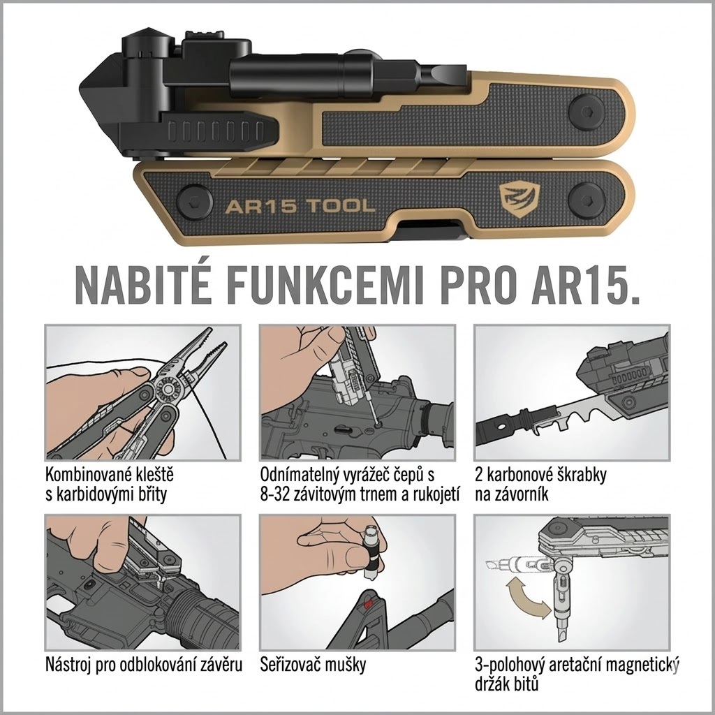 Komplexní systém nástrojů pro AR15 se 37 funkcemi