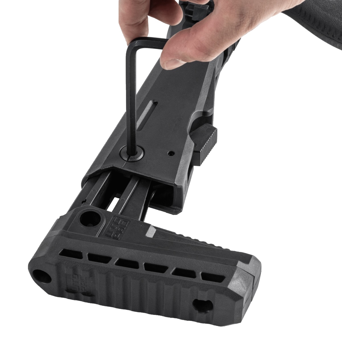 Vybavte svou AK pažbou s 5polohovým rychlým nastavením délky tahu (LOP), pogumovanou botkou, úchyty rychloupínacího popruhu (QD) vpředu a vzadu a možností sklopení na pravou stranu pro kompaktní skladování a přepravu. Hrdě navrženo a vyrobeno v USA.