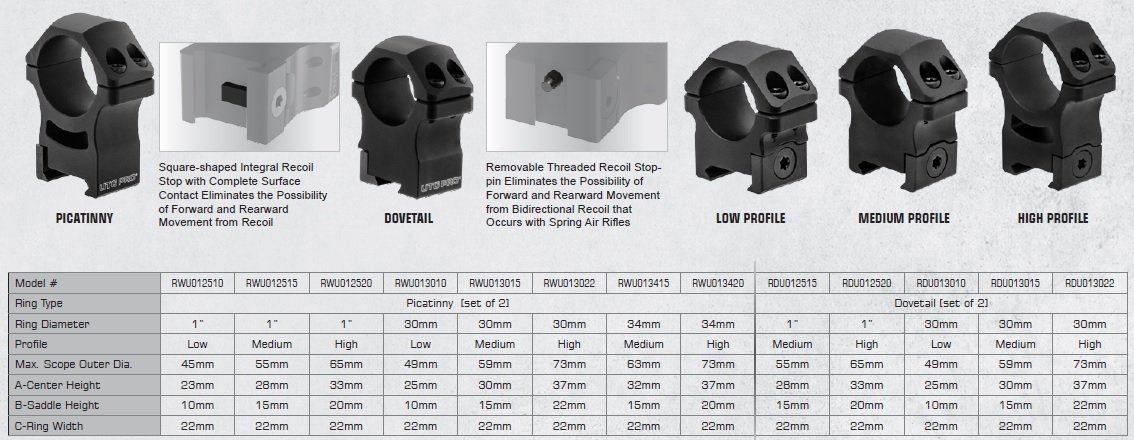 Tyto kroužky jsou dostupné v různých velikostech a výškách, aby vyhovovaly různým puškohledům a konfiguracím