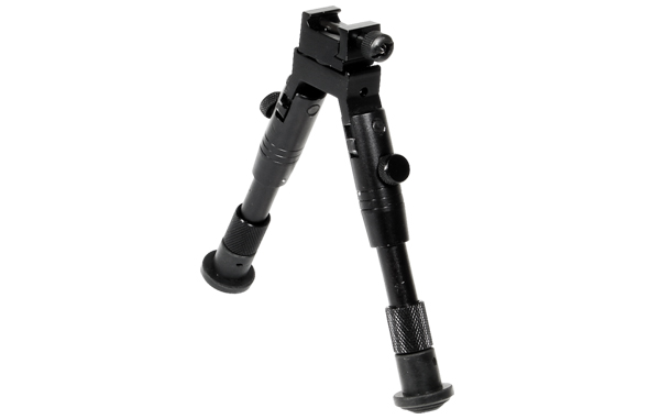 Sklopný bipod s hliníkovou konstrukcí. Bipod je vybaven gumovými protiskluzovými kryty nožiček. Každá z nožiček je nastavitelná zvlášť v délce 6,2 - 6,7 palce. Možnost aretace ve dvou polohách.