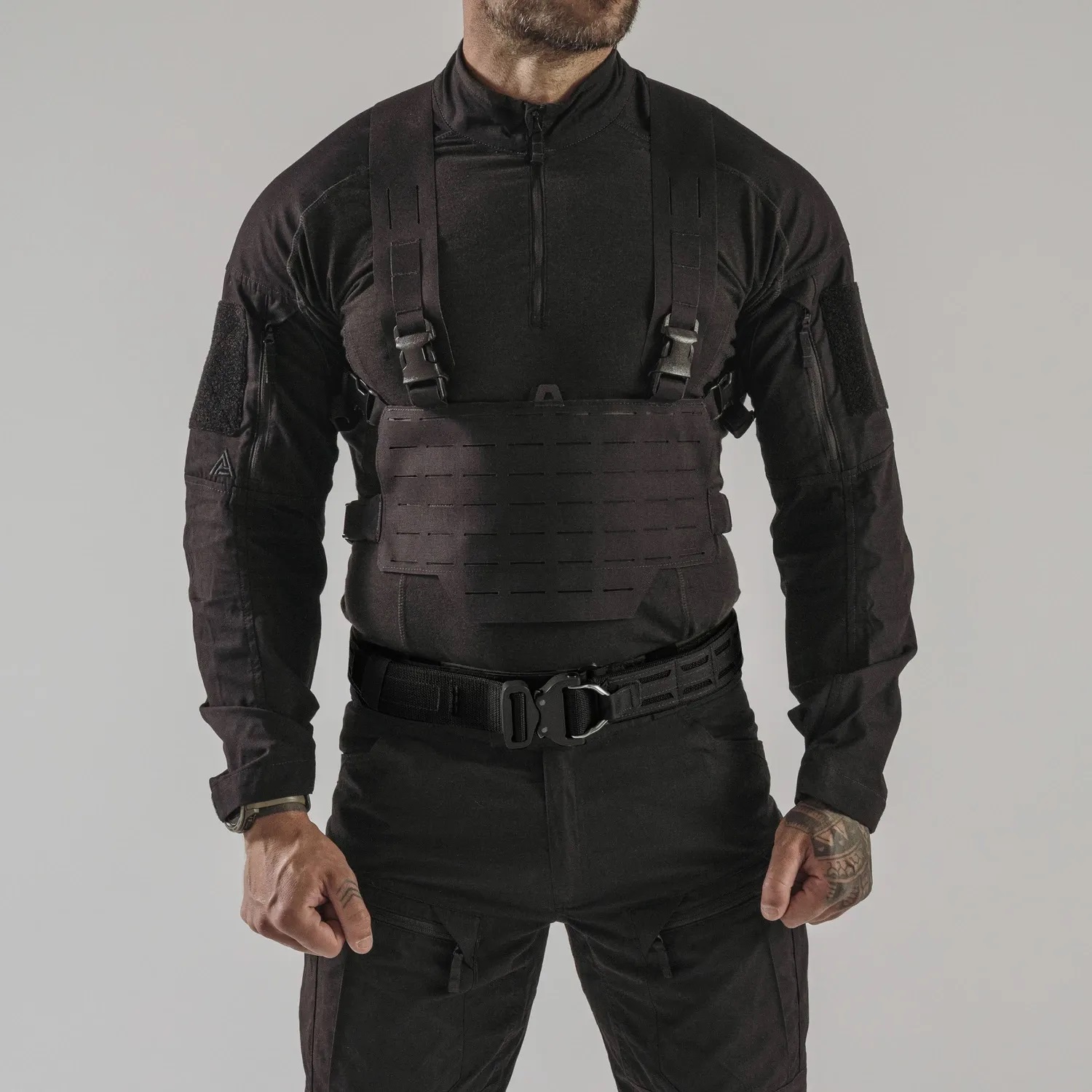 • Suchý zip. Často se používá pro upevnění balistických plátů a doplňků. Umožňuje snadné nastavení a výměnu komponentů.