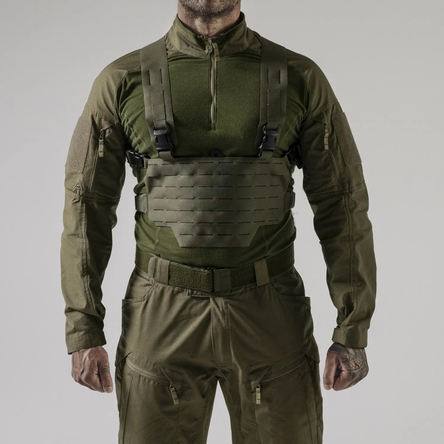 • Modularita. Systém MOLLE (Modular Lightweight Load-carrying Equipment) umožňuje připevnění různých modulů a doplňků, jako jsou kapsy, zdravotnické soupravy a další prvky. To dělá nosiče velmi flexibilními a přizpůsobitelnými různým úkolům.